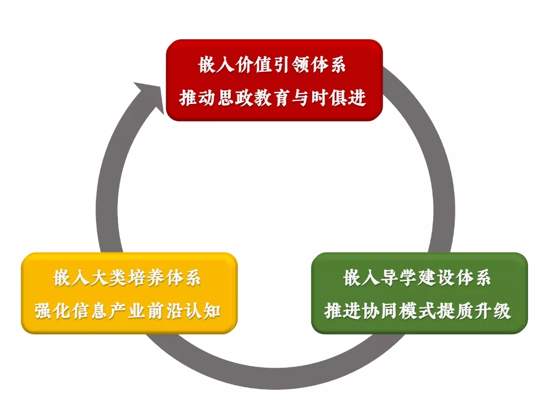 既注重與企業(yè)協(xié)同開展引導(dǎo)學(xué)生樹立遠(yuǎn)大理想、立大志入主流的思政育人,也注重與企業(yè)開設(shè)信息產(chǎn)業(yè)前沿認(rèn)知與創(chuàng)新創(chuàng)業(yè)能力實訓(xùn)課程,開展大通識教育、專業(yè)通識教育,提升大類培養(yǎng)成效。