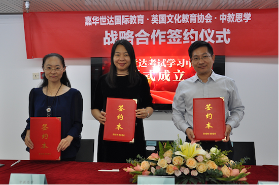 2021年9月16日下午,北京嘉華世達國際教育交流有限公司、英國文化教育協(xié)會(雅思考試主辦方)與中教思學(北京)科技有限公司三方正式達成戰(zhàn)略合作,嘉華世達考試學習中心正式宣告掛牌成立。教育部留學服務中心副主任李曉哲、教育部留學服務中心國際處副處長鄭躍、英國文化教育協(xié)會考試部考務運營總監(jiān)游卓然、英國文化教育協(xié)會考試部華北華中區(qū)考試業(yè)務總監(jiān)張藝蕾、嘉華世達總經理金云華、副總經理李大鵬,中教思學執(zhí)行總經理周玲及國內部分院校代表等出席了簽約儀式。