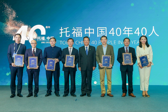 中國(guó)教育國(guó)際交流協(xié)會(huì)會(huì)長(zhǎng)劉利民為“托福中國(guó)40年40人”榜單獲獎(jiǎng)代表頒獎(jiǎng)