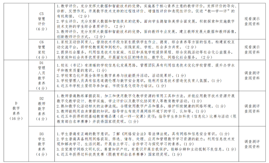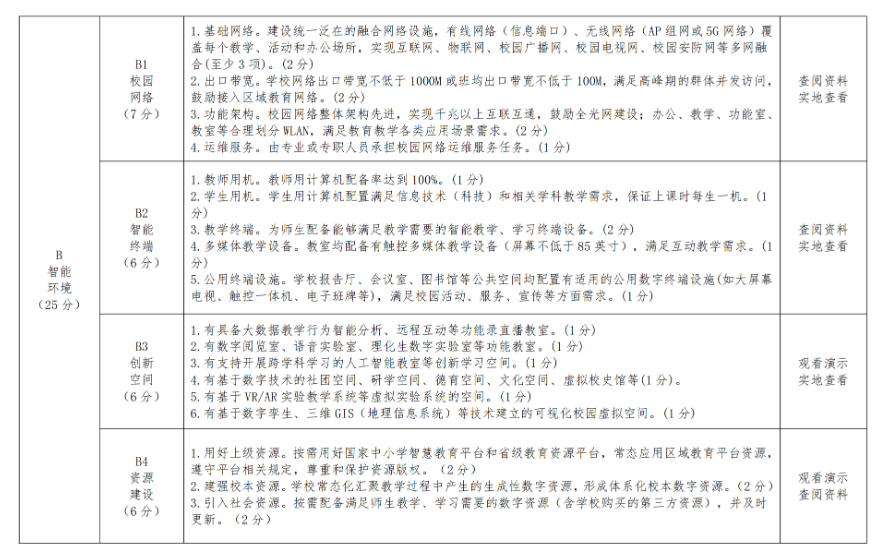 日前,河南省教育廳印發(fā)《河南省中小學(xué)智慧校園評估標(biāo)準(zhǔn)(試行)》,明確6大項一級指標(biāo)和21項二級指標(biāo),評估辦法主要包括查閱資料、實地查看、觀看演示、調(diào)查測評等多種形式。