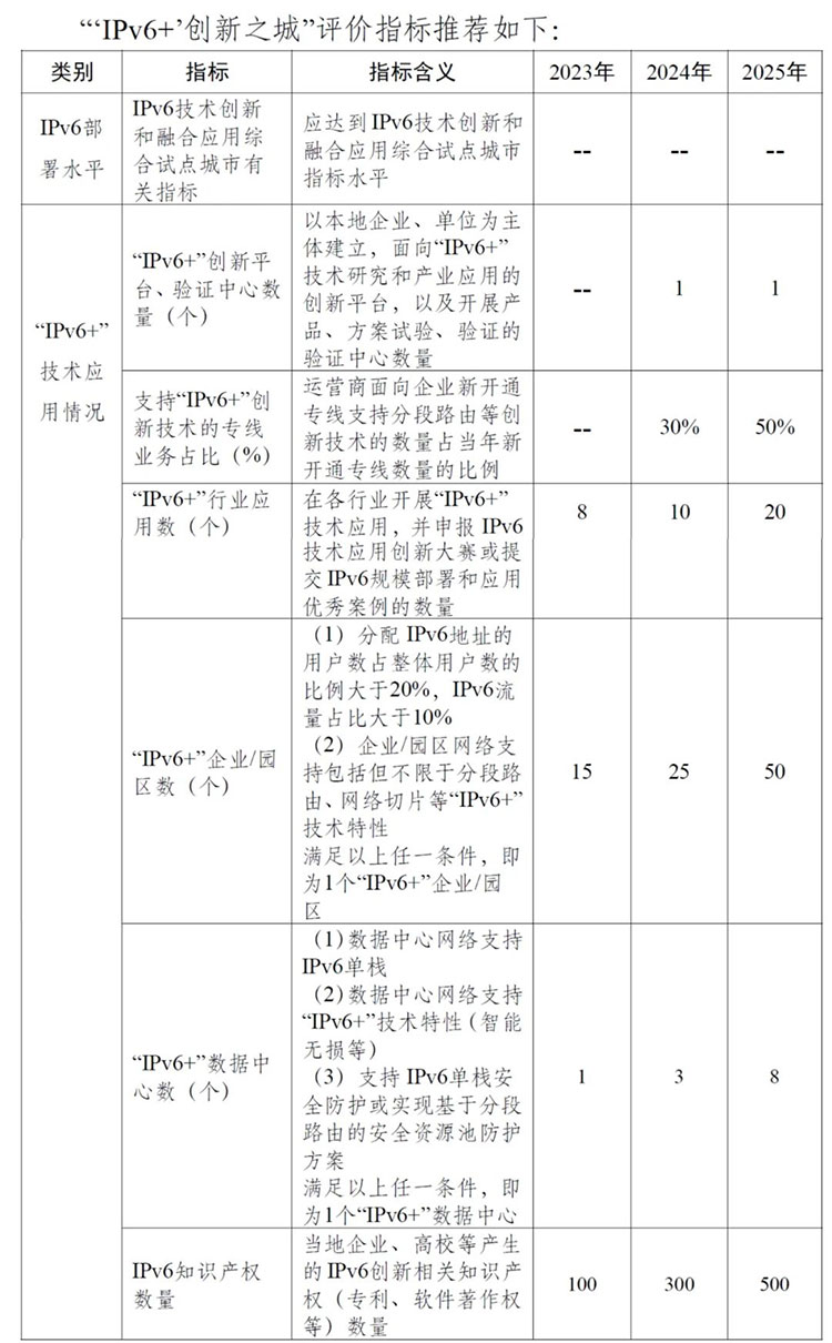 附件:“ ‘IPv6+’ 創(chuàng)新之城”推薦性指標