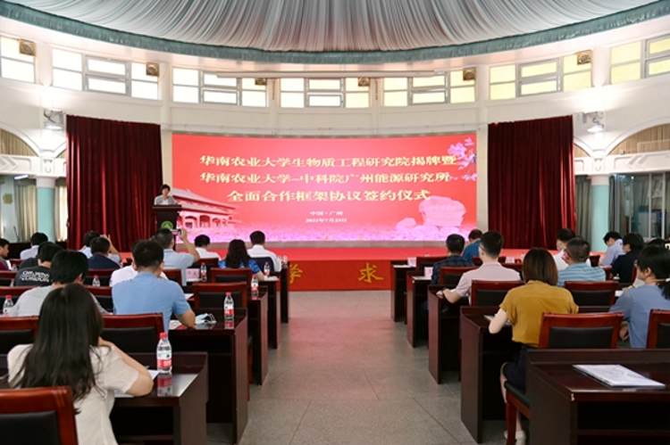 7月23日上午,學(xué)校在紅滿堂隆重舉行華南農(nóng)業(yè)大學(xué)生物質(zhì)工程研究院揭牌暨華南農(nóng)業(yè)大學(xué)-中科院廣州能源研究所全面合作框架協(xié)議簽約儀式。校長(zhǎng)劉雅紅,中國(guó)工程院院士、美國(guó)工程院外籍院士、“丁穎講座教授”謝克昌,中國(guó)工程院院士、生物質(zhì)工程研究院名譽(yù)院長(zhǎng)陳勇,中國(guó)科學(xué)院廣州能源研究所所長(zhǎng)呂建成等出席會(huì)議。儀式由副校長(zhǎng)仇榮亮主持。