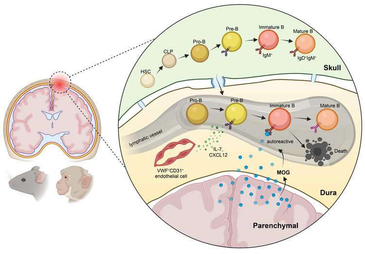 圖1. 腦膜B淋巴細(xì)胞發(fā)育與陰性篩選研究總結(jié)示意圖