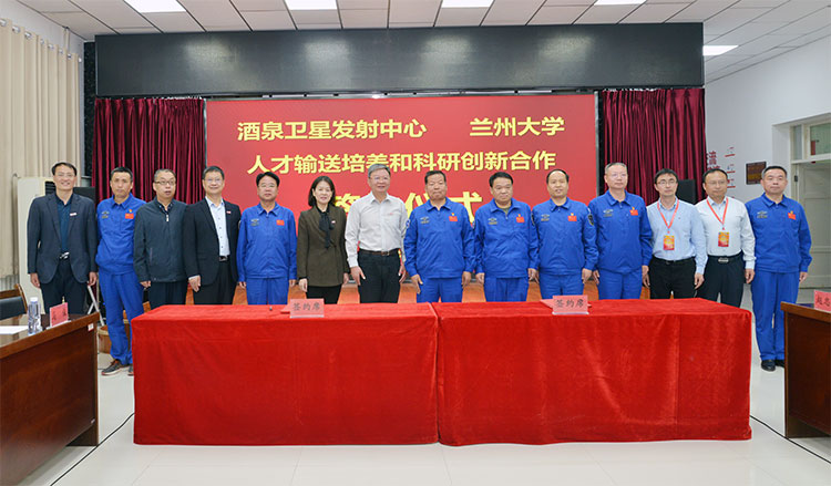 5月30日,蘭州大學校長嚴純華一行赴酒泉衛(wèi)星發(fā)射中心推進合作,簽署校地人才培養(yǎng)和科研創(chuàng)新合作協(xié)議。酒泉衛(wèi)星發(fā)射中心黨委書記姜漢民、副主任路春福、總工程師鄭永煌、安全部主任劉惠斌,中國科學院院士、蘭州大學校長嚴純華,副校長曹紅出席簽約儀式。