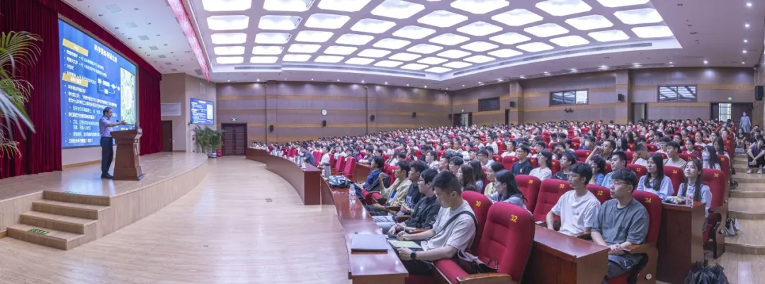 500余名國科大2024級集中教學新生在主會場聆聽報告,各院系和培養(yǎng)單位通過線上分會場集中觀看。國科大黨委常委、副校長金德鵬出席報告會。