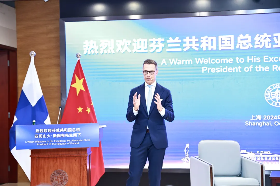 10月31日上午,芬蘭總統(tǒng)斯圖布到訪復旦大學,在光華樓袁天凡報告廳發(fā)表演講,并與現(xiàn)場師生交流。此行是他二度到訪復旦。2013年4月,他在擔任芬蘭外貿與歐洲事務部長期間就曾訪問復旦,并發(fā)表演講。
