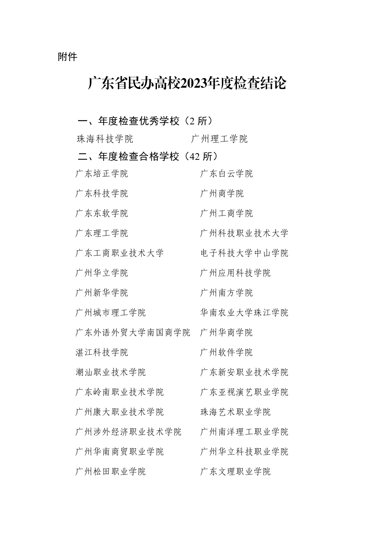 11月7日,廣東省教育廳發(fā)布《廣東省民辦高校2023年度檢查結論的公示》。參評的高校中,2所高校年度檢查結果為“優(yōu)秀”,42所為“合格”,6所為“基本合格”。
