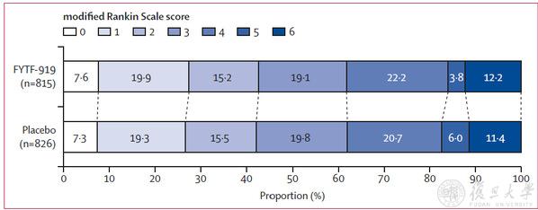 研究過程中,患者按照1:1比例被隨機(jī)分配到試驗(yàn)藥物組或安慰劑組,接受為期28天的治療。研究團(tuán)隊(duì)重點(diǎn)考察患者90天的功能性結(jié)局(Utility-weighted mRS, UW-mRS),同時(shí)關(guān)注其早期神經(jīng)功能惡化、生存率、健康生活質(zhì)量(EQ-5D)及180天隨訪情況。