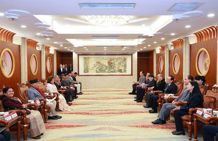 尼泊爾總理夫人拉迪卡·沙基亞(Mrs. Radhika Shakya)、外交部長(zhǎng)阿祖·拉納·德烏帕(Hon. Dr. Arzu Rana Deuba)、尼泊爾駐華大使里希納·普拉薩德·奧利(H.E. Mr. Krishna Prasad Oli)以及尼泊爾訪華代表團(tuán)成員一同來訪。中華人民共和國駐尼泊爾特命全權(quán)大使陳松陪同來訪。