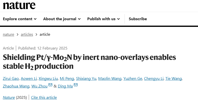 研究團(tuán)隊(duì)在《Nature》雜志發(fā)表的研究成果題為“ShieldingPt/γ-Mo2N by Inert Nano-overlays Enables Stable H2 Production”,聚焦催化劑穩(wěn)定性,延續(xù)了馬丁教授此前在甲醇和水重整制氫方面的研究,創(chuàng)新性地引入稀土元素對(duì)催化劑進(jìn)行改造,開(kāi)發(fā)出了一種全新且泛用的高活性產(chǎn)氫催化劑穩(wěn)定策略。研究發(fā)現(xiàn),當(dāng)稀土元素存在于催化劑表面并保護(hù)住催化劑的“非界面活性位”時(shí),催化劑的壽命得到了大幅提升。具體而言,催化劑中每個(gè)Pt原子可以產(chǎn)生1500萬(wàn)個(gè)氫分子,這一“轉(zhuǎn)換數(shù)”整整超過(guò)了此前報(bào)道的最高記錄一個(gè)數(shù)量級(jí)。這一歷史性突破為高效、穩(wěn)定的制氫技術(shù)提供了全新思路。