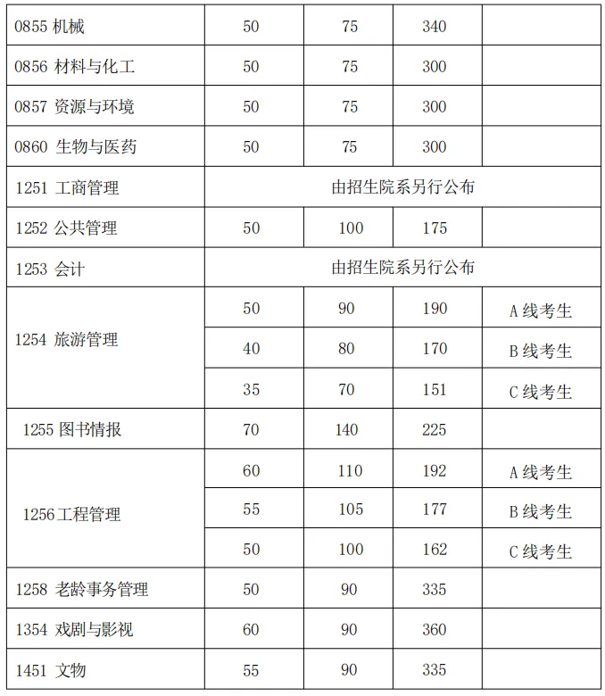 其他類型考生進(jìn)入復(fù)試的初試成績基本要求