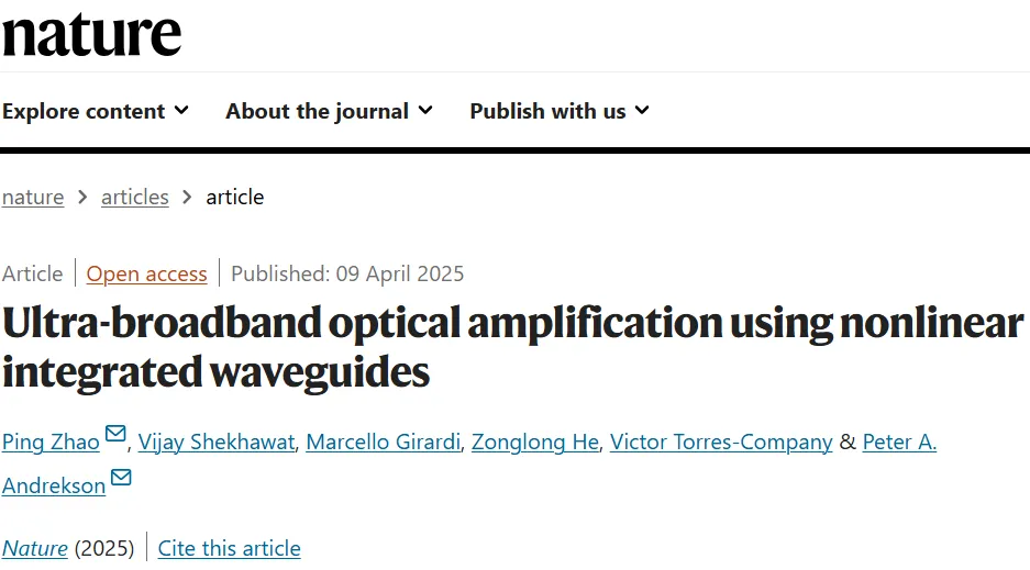 近日,四川大學(xué)電子信息學(xué)院趙平團隊聯(lián)合瑞典查爾姆斯理工大學(xué)Peter Andrekson教授團隊,在光放大器制備領(lǐng)域取得重要進展。相關(guān)研究以Ultra-broadband optical amplification using nonlinear integrated waveguides為題發(fā)表于Nature。四川大學(xué)趙平研究員為論文第一作者。
