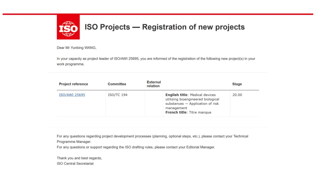 近日,在國(guó)家藥監(jiān)局重組膠原蛋白相關(guān)標(biāo)準(zhǔn)工作的基礎(chǔ)上,由四川大學(xué)牽頭的國(guó)際標(biāo)準(zhǔn)提案《利用生物工程生物物質(zhì)制備的醫(yī)療器械-應(yīng)用風(fēng)險(xiǎn)管理》(英文:Medical devices utilizing bioengineered biological substances--Application of risk managemen)正式通過國(guó)際標(biāo)準(zhǔn)化組織醫(yī)療器械生物學(xué)和臨床評(píng)價(jià)標(biāo)準(zhǔn)化技術(shù)委員會(huì)(ISO/TC194)的立項(xiàng)評(píng)審。該標(biāo)準(zhǔn)是全球首個(gè)針對(duì)生物工程生物物質(zhì)醫(yī)療器械風(fēng)險(xiǎn)管理的國(guó)際標(biāo)準(zhǔn),旨在規(guī)范和建立利用重組膠原蛋白等合成生物學(xué)新材料及先進(jìn)生物技術(shù)制備的醫(yī)療器械的安全評(píng)估體系。我校國(guó)家生物醫(yī)學(xué)材料工程技術(shù)研究中心主任/生物醫(yī)學(xué)工程學(xué)院院長(zhǎng)王云兵教授擔(dān)任項(xiàng)目負(fù)責(zé)人進(jìn)行答辯匯報(bào)。此次立項(xiàng)成功,體現(xiàn)了國(guó)際社會(huì)對(duì)我國(guó)在該領(lǐng)域技術(shù)積累和標(biāo)準(zhǔn)化能力的認(rèn)可,也為我國(guó)未來在生物醫(yī)藥產(chǎn)業(yè)的國(guó)際競(jìng)爭(zhēng)中爭(zhēng)取更大話語權(quán)奠定了基礎(chǔ)。