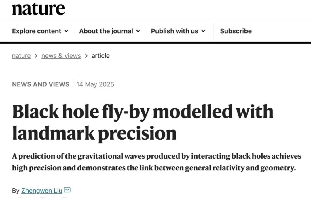 劉正文教授于2024年加盟東南大學(xué),依托物理學(xué)院與丘成桐中心開(kāi)展新興的量子場(chǎng)論與引力波理論前沿交叉研究。News & Views是Nature雜志廣受歡迎欄目,通常邀請(qǐng)相關(guān)領(lǐng)域的前沿專(zhuān)家對(duì)最新的重大科學(xué)成果進(jìn)行權(quán)威評(píng)述。此次劉正文教授受邀發(fā)表評(píng)論文章,不僅是對(duì)他本人學(xué)術(shù)成就的高度認(rèn)可,也凸顯了東南大學(xué)團(tuán)隊(duì)在解析相對(duì)論與引力波研究領(lǐng)域的國(guó)際學(xué)術(shù)影響力。