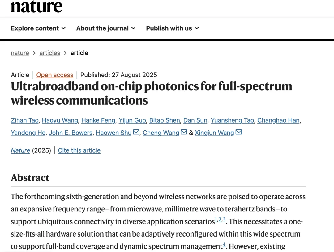 《全頻段無(wú)線通信的超寬帶集成光電融合芯片》
