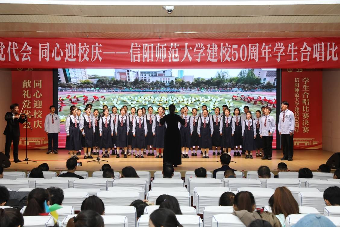 為慶祝中國共產(chǎn)黨信陽師范大學(xué)第一次黨員代表大會勝利召開,共迎母校五十周年華誕,10月15日,信陽師范大學(xué)“獻禮黨代會 同心迎校慶”學(xué)生合唱比賽在理科樓報告廳隆重舉行。校黨委書記王文鵬,校黨委副書記、工會主席岳宗德,副校長武治國出席活動。相關(guān)職能部門、各學(xué)院負(fù)責(zé)人及500余名師生代表共同觀看比賽,見證這場音樂與情懷交融的盛會。