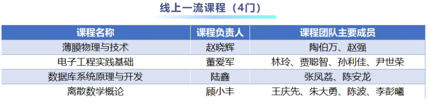 此次電子科技大學(xué)入選的國家級一流本科課程,包括線上一流課程4門、虛擬仿真實驗教學(xué)一流課程4門、線上線下混合式一流課程10門、線下一流課程5門、社會實踐一流課程1門。