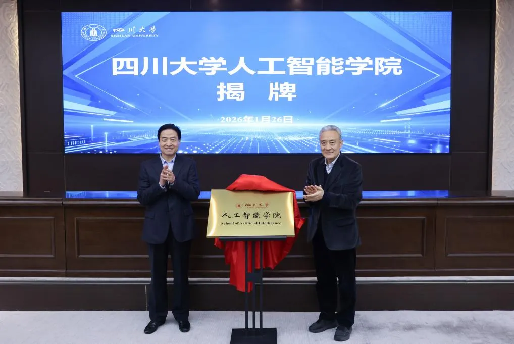 甘霖、汪勁松為“四川大學人工智能學院”揭牌。