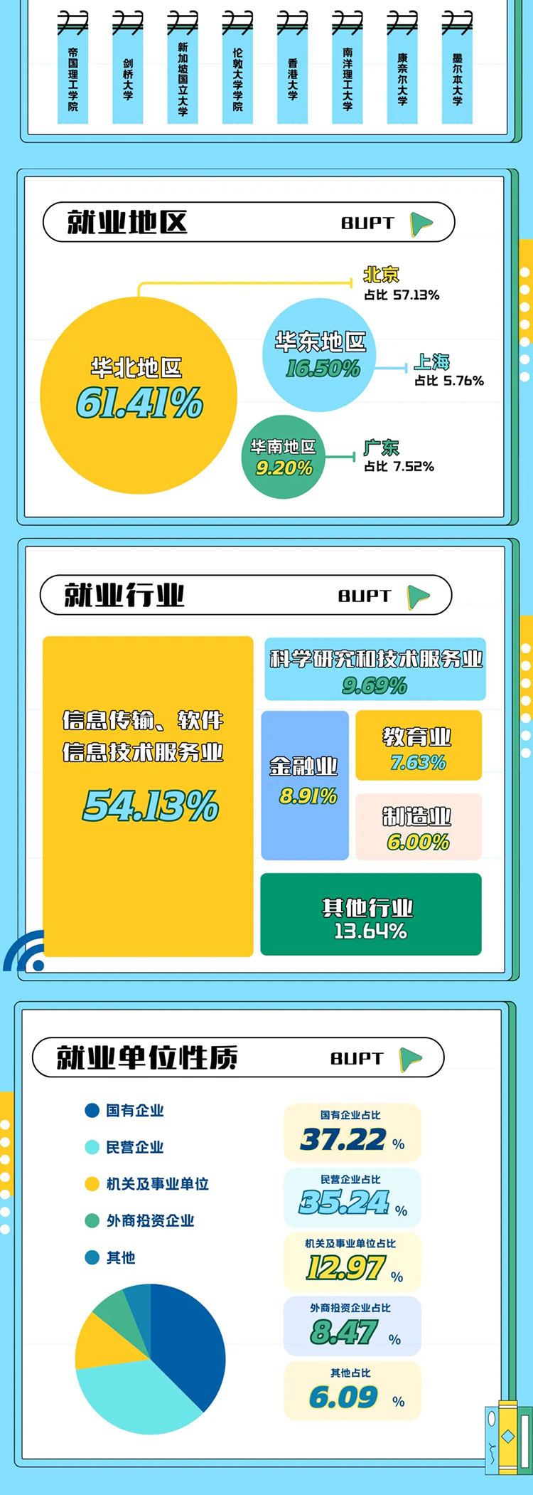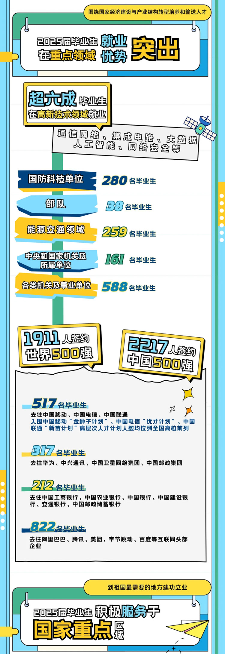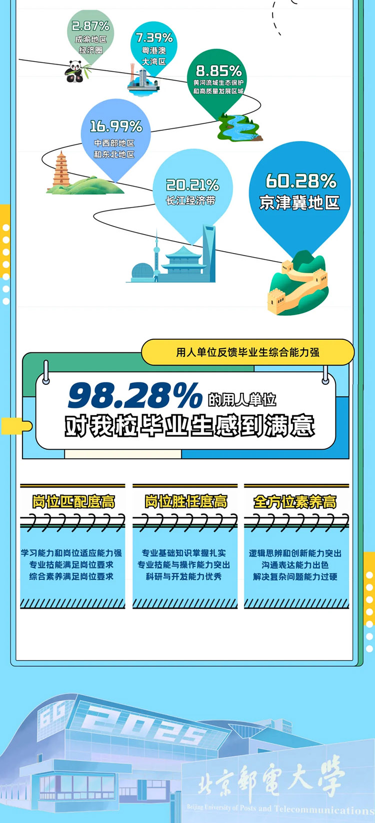 截至2025年10月31日,北京郵電大學(xué)總體畢業(yè)去向落實(shí)率為94.35%。其中本科畢業(yè)生去向落實(shí)率為90.35%,另有5.63%本科畢業(yè)生擬繼續(xù)深造。碩士畢業(yè)生去向落實(shí)率為98.51%,博士畢業(yè)生去向落實(shí)率為96.41%。