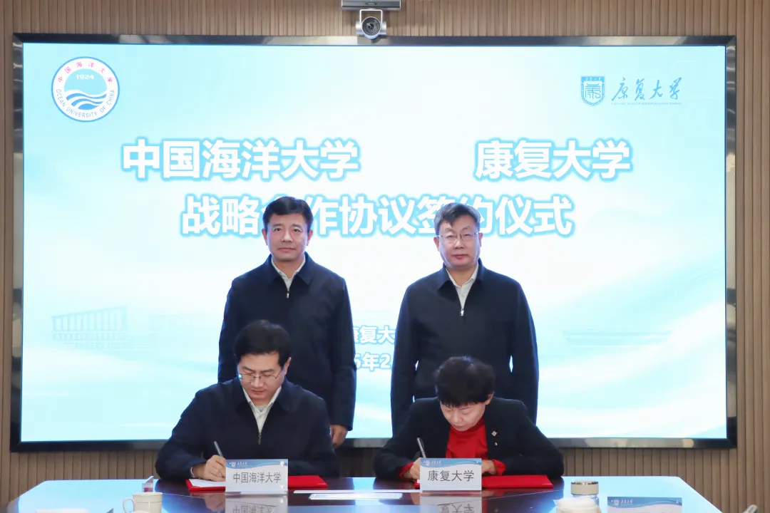 2月9日上午,中國海洋大學(xué)與康復(fù)大學(xué)戰(zhàn)略合作協(xié)議簽約儀式在康復(fù)大學(xué)舉行。中國海洋大學(xué)黨委書記李明、黨委常務(wù)副書記張靜、副校長王雪鵬出席儀式。中國工程院院士、康復(fù)大學(xué)校長董爾丹主持并致歡迎辭。黨委書記劉軍,分管日常工作的副校長姜宏,副校長畢建國、劉奇跡出席儀式。