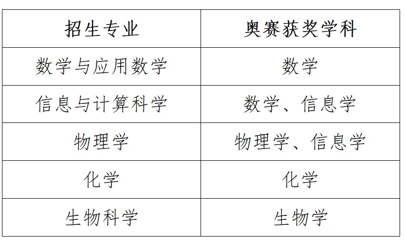 我校將對(duì)在數(shù)學(xué)、物理、化學(xué)、生物學(xué)、信息學(xué)奧林匹克競(jìng)賽中獲得全國決賽二等獎(jiǎng)及以上獎(jiǎng)項(xiàng)的報(bào)名考生審核其相關(guān)學(xué)科領(lǐng)域的競(jìng)賽成績,審核通過后可以破格入圍。審核通過的破格入圍考生高考成績須達(dá)到所在省(自治區(qū)、直轄市)同科類部分特殊類型相應(yīng)最低錄取控制分?jǐn)?shù)線。