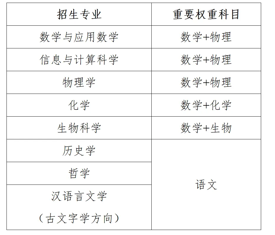 入圍成績=重要權(quán)重科目高考成績*1.5+其他科目高考成績之和