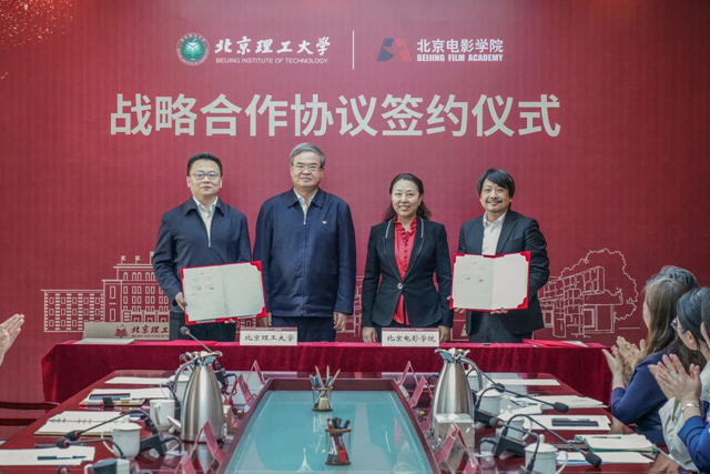 為推動(dòng)文化與科技深度融合,一體推進(jìn)教育科技人才發(fā)展,奮力實(shí)現(xiàn)“十五五”良好開(kāi)局,4月23日下午,北京理工大學(xué)與北京電影學(xué)院舉行戰(zhàn)略合作框架協(xié)議簽約儀式。北京理工大學(xué)黨委書(shū)記張軍院士,黨委常委、副校長(zhǎng)王博,黨委常委、黨委宣傳部部長(zhǎng)藺偉;北京電影學(xué)院黨委書(shū)記周志軍,黨委副書(shū)記、院長(zhǎng)扈強(qiáng),黨委副書(shū)記支宏偉,黨委常委、紀(jì)委書(shū)記劉新軍,黨委常委、副院長(zhǎng)李偉,黨委常委、懷柔校區(qū)管委會(huì)黨總支書(shū)記陸花參加簽約儀式。