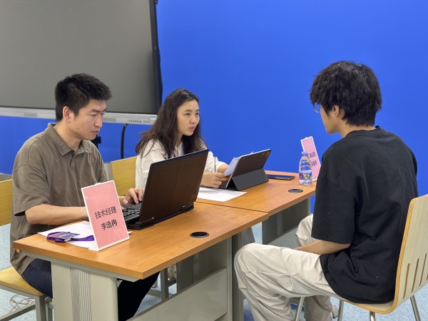 (圖為:就業(yè)導(dǎo)師給學(xué)生進行模擬面試)