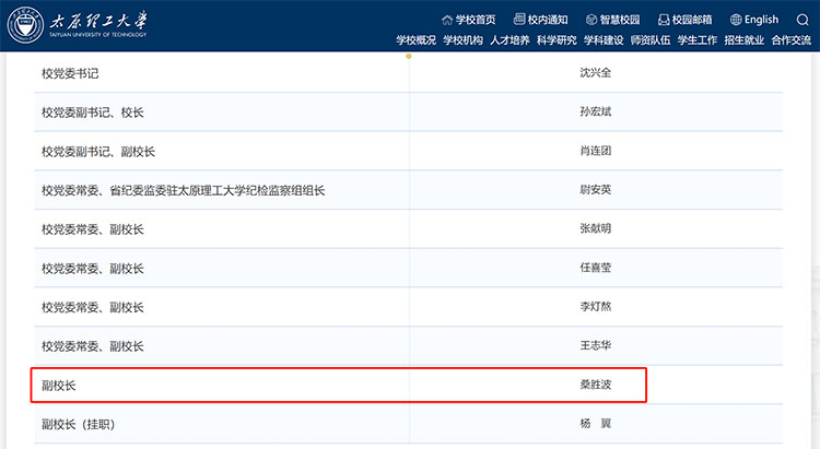 根據(jù)太原理工大學(xué)官網(wǎng)更新顯示,此前擔(dān)任學(xué)校科學(xué)技術(shù)研究院院長的桑勝波教授已晉升為副校長。
