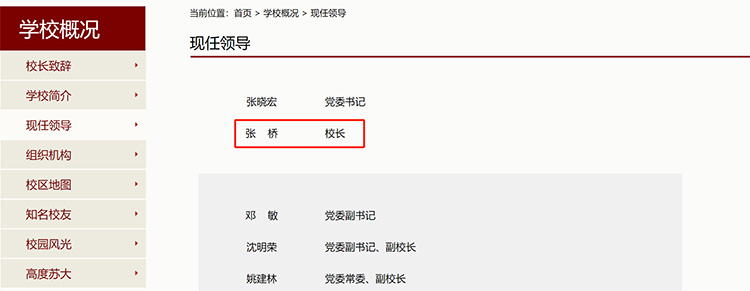 6月10日,蘇州大學(xué)官網(wǎng)“現(xiàn)任領(lǐng)導(dǎo)”一欄顯示,張橋已任該校校長。