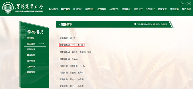 近日,沈陽農(nóng)業(yè)大學官網(wǎng)“現(xiàn)任領導”欄目變更顯示,李斌已任沈陽農(nóng)業(yè)大學黨委副書記、校長。公開報道顯示,沈陽農(nóng)業(yè)大學上一任校長為陳啟軍,于2018年初上任,2024年初卸任。此后,沈陽農(nóng)業(yè)大學校長職務空缺至今。