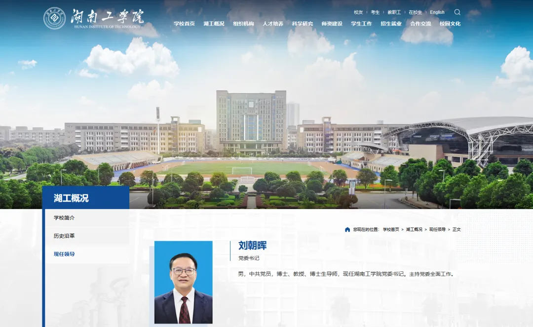 近日,湖南工學(xué)院官網(wǎng)“現(xiàn)任領(lǐng)導(dǎo)”欄更新顯示,劉朝暉已任學(xué)校黨委書記。