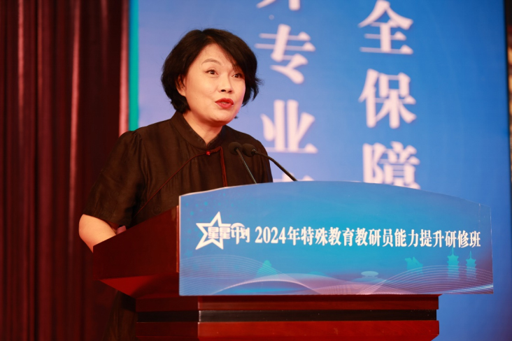 教育部基礎(chǔ)教育司副司長李海勝指出,此次特殊教育教研員能力提升研修班,是近年來首次舉辦的國家級特殊教育教研員隊(duì)伍專項(xiàng)培訓(xùn),這既是貫徹落實(shí)黨的二十大關(guān)于“強(qiáng)化特殊教育普惠發(fā)展”的實(shí)際行動,也是落實(shí)黨的二十屆三中全會“健全特殊教育保障機(jī)制”的具體體現(xiàn),對建設(shè)教育強(qiáng)國,提升民生保障力,構(gòu)建公平優(yōu)質(zhì)基礎(chǔ)教育體系具有重要意義。辦好特殊教育,是黨和政府堅(jiān)持以人民為中心、弘揚(yáng)人道主義精神和保障基本人權(quán)的重要舉措,是推進(jìn)教育高質(zhì)量發(fā)展、加快建設(shè)教育強(qiáng)國的應(yīng)有之義,也是推進(jìn)中國式現(xiàn)代化、實(shí)現(xiàn)共同富裕的內(nèi)在要求。他強(qiáng)調(diào),加強(qiáng)特殊教育教研工作,是提升特殊教育質(zhì)量的關(guān)鍵所在。各級教育部門要高度重視特殊教育教研工作,健全教研體制機(jī)制,加強(qiáng)教研隊(duì)伍建設(shè),提升教學(xué)研究水平和教學(xué)指導(dǎo)能力,為特殊教育高質(zhì)量發(fā)展提供有力支撐。