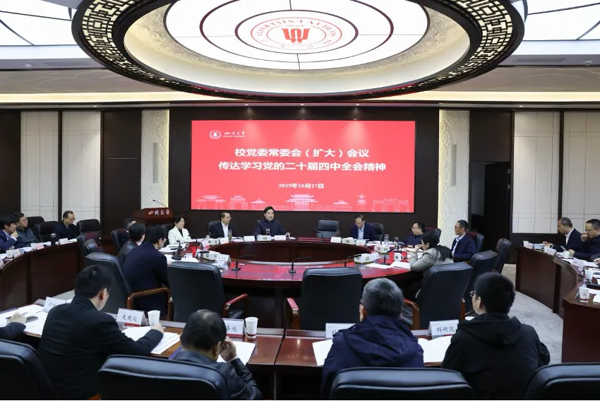 10月27日,四川大學(xué)黨委常委會(huì)召開(kāi)(擴(kuò)大)會(huì)議,傳達(dá)學(xué)習(xí)黨的二十屆四中全會(huì)精神,研究部署學(xué)校學(xué)習(xí)宣傳貫徹落實(shí)工作。校黨委書(shū)記甘霖主持會(huì)議,全體在校校領(lǐng)導(dǎo),黨委常委,相關(guān)單位負(fù)責(zé)人參加會(huì)議。