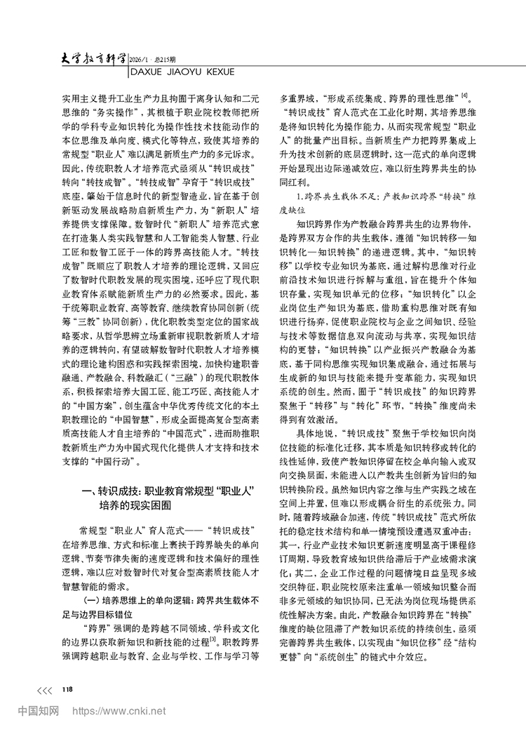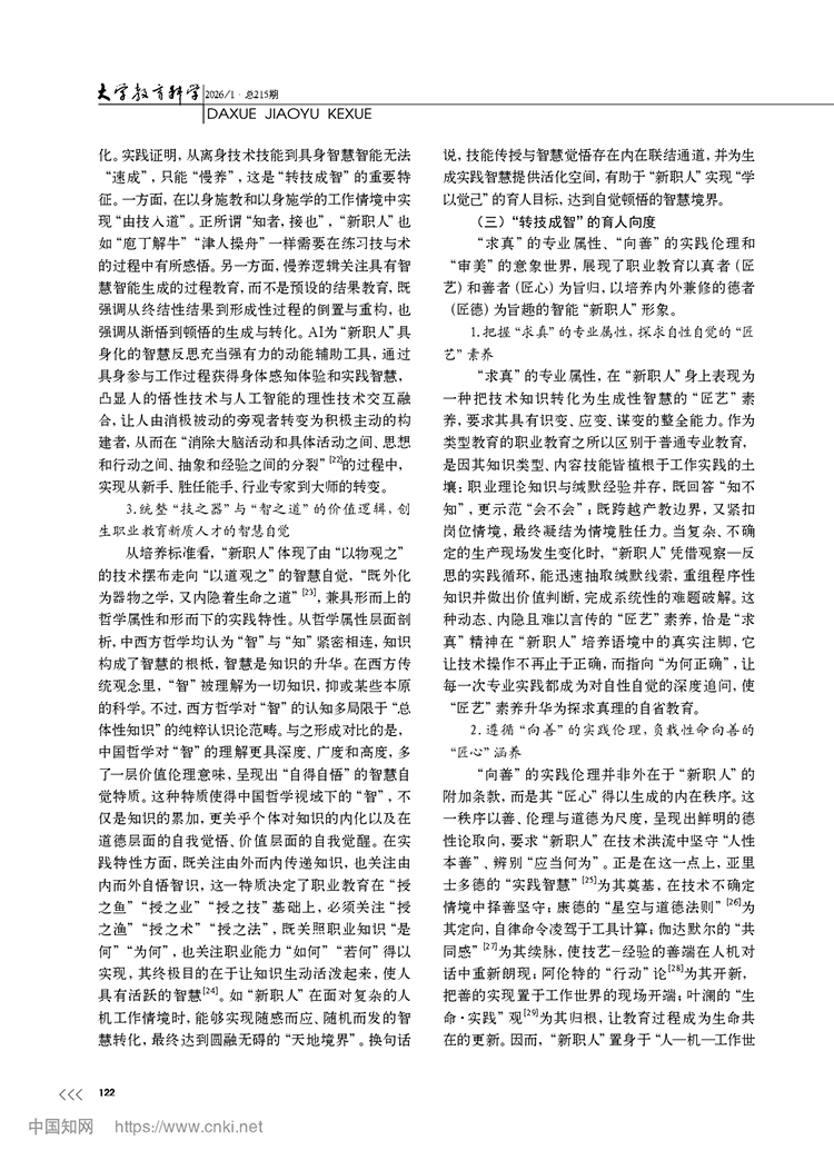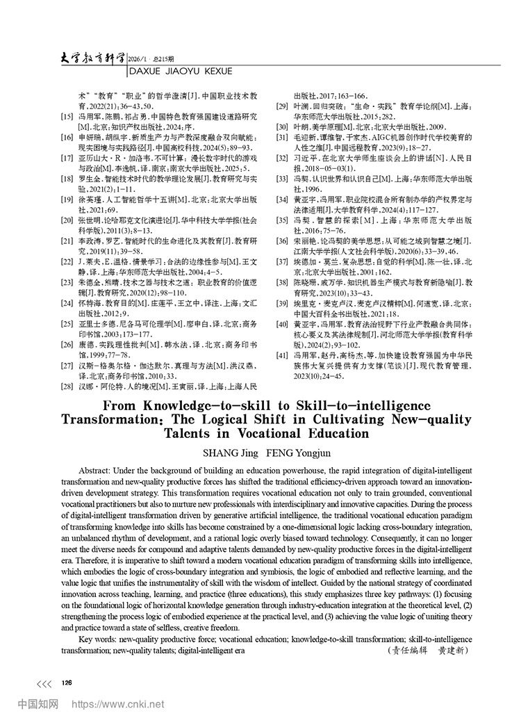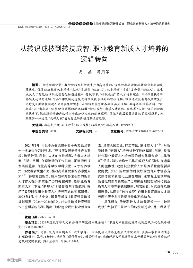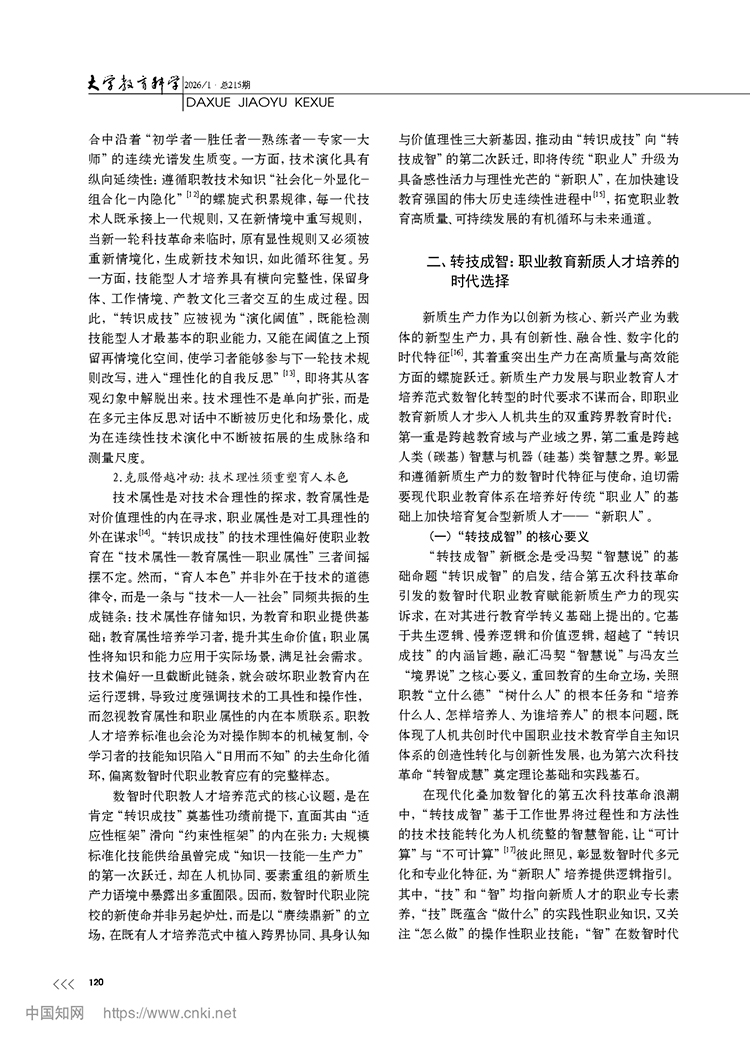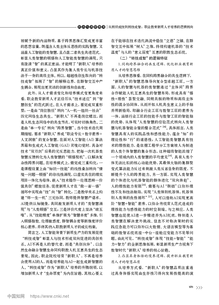 尚晶 馮用軍|從轉(zhuǎn)識成技到轉(zhuǎn)技成智:職業(yè)教育新質(zhì)人才培養(yǎng)的邏輯轉(zhuǎn)向
