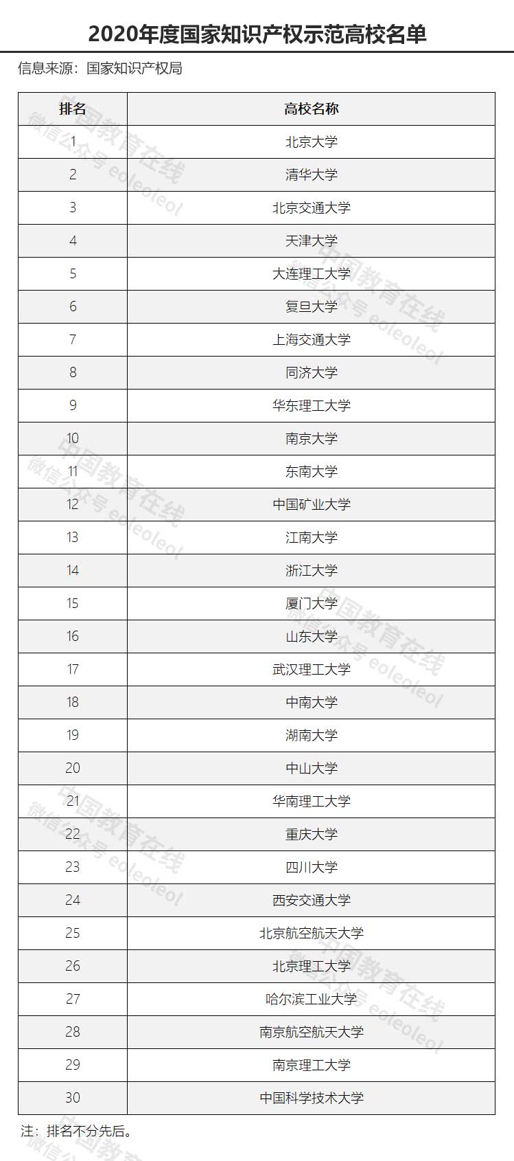10月21日,國家知識產(chǎn)權(quán)局、教育部聯(lián)合公布2020年度國家知識產(chǎn)權(quán)試點示范高校名單,清華大學等共110所高校入選。