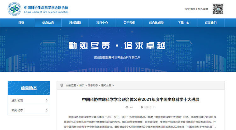 1月10日,中國科學技術協(xié)會生命科學學會聯(lián)合體發(fā)布了2021年度“中國生命科學十大進展”,本年度入選成果包括8個知識創(chuàng)新類和2個技術創(chuàng)新類項目成果。其中西北工業(yè)大學、清華大學、復旦大學、中山大學、東南大學等5所高校的科研成果成功入選。