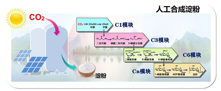 淀粉是糧食最主要的成分,也是重要的工業(yè)原料。中國科學院天津工業(yè)生物技術研究所聯(lián)合大連化物所等單位,抽提自然光合作用的化學本質(zhì),從頭設計創(chuàng)建了從二氧化碳到淀粉合成的非自然途徑,解決了途徑代謝流從頭計算、關鍵酶元件設計組裝、生化途徑精確調(diào)控等科學問題,以生物催化與化學催化耦合的11步反應,顛覆了自然光合作用固定二氧化碳合成淀粉的復雜生化過程,在國際上首次實現(xiàn)了二氧化碳到淀粉的人工全合成,能效和速率超越玉米等農(nóng)作物,突破了自然光合作用局限,為淀粉的車間制造打開了一扇窗,并為二氧化碳原料合成復雜分子提供了新思路。在國際上引起強烈反響,被認為是一項里程牌式突破,將在下一代生物制造和農(nóng)業(yè)生產(chǎn)中帶來變革性影響。