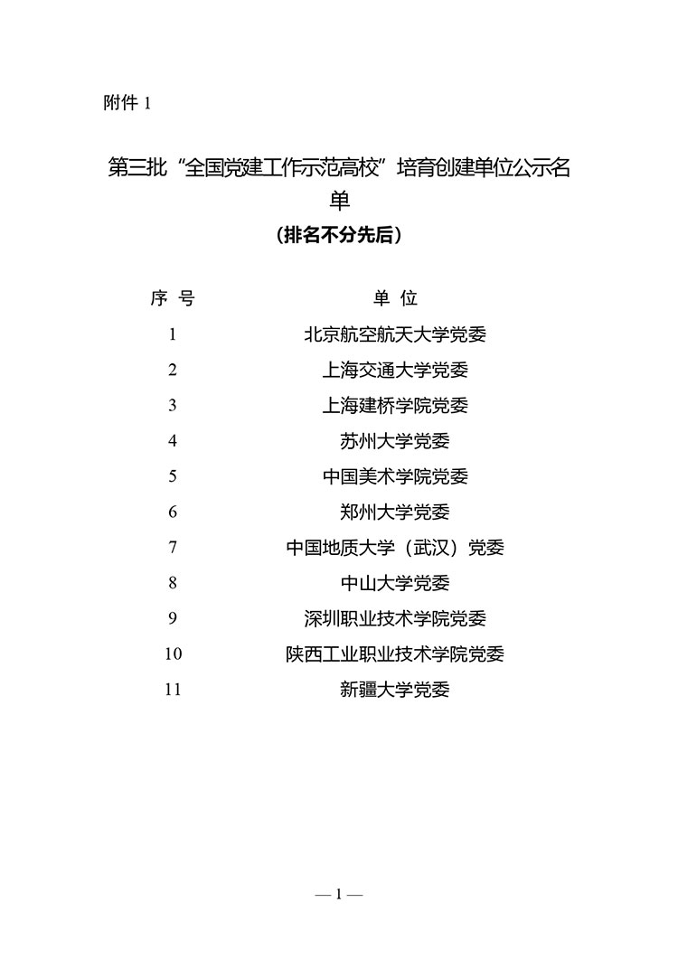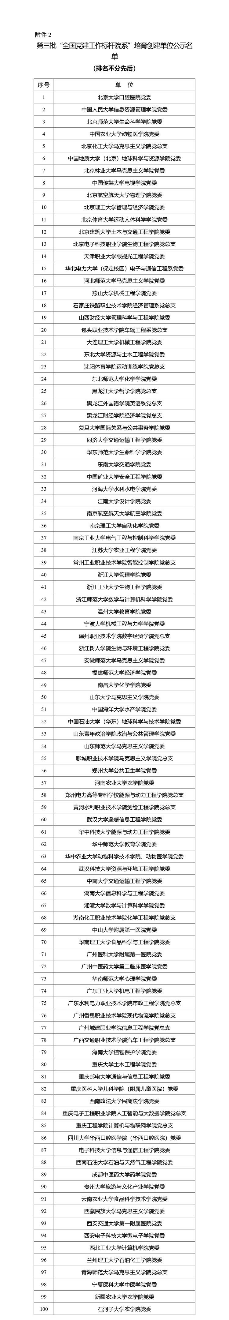 教育部公示第三批新時(shí)代高校黨建示范創(chuàng)建和質(zhì)量創(chuàng)優(yōu)工作遴選結(jié)果