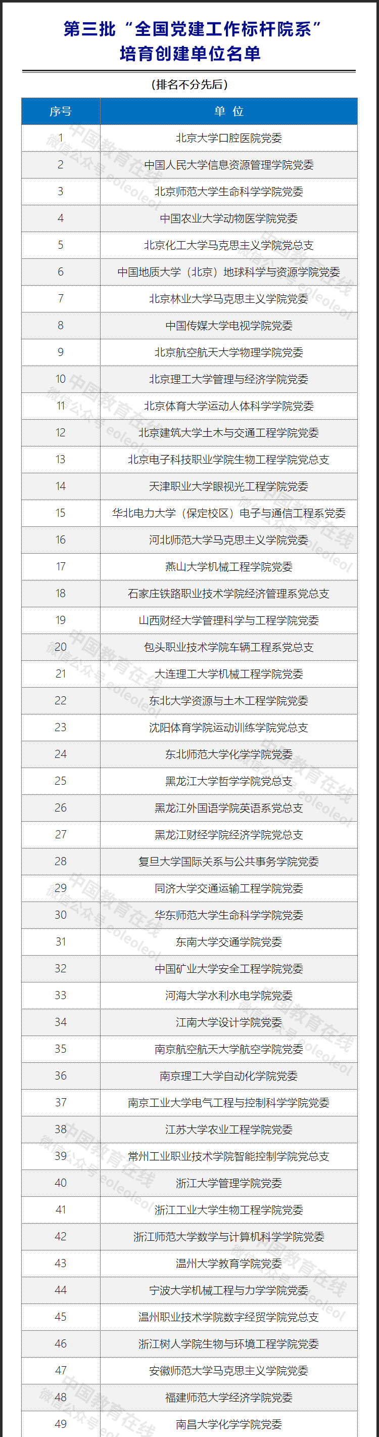 第三批“全國黨建工作標(biāo)桿院系”培育創(chuàng)建單位名單如下: