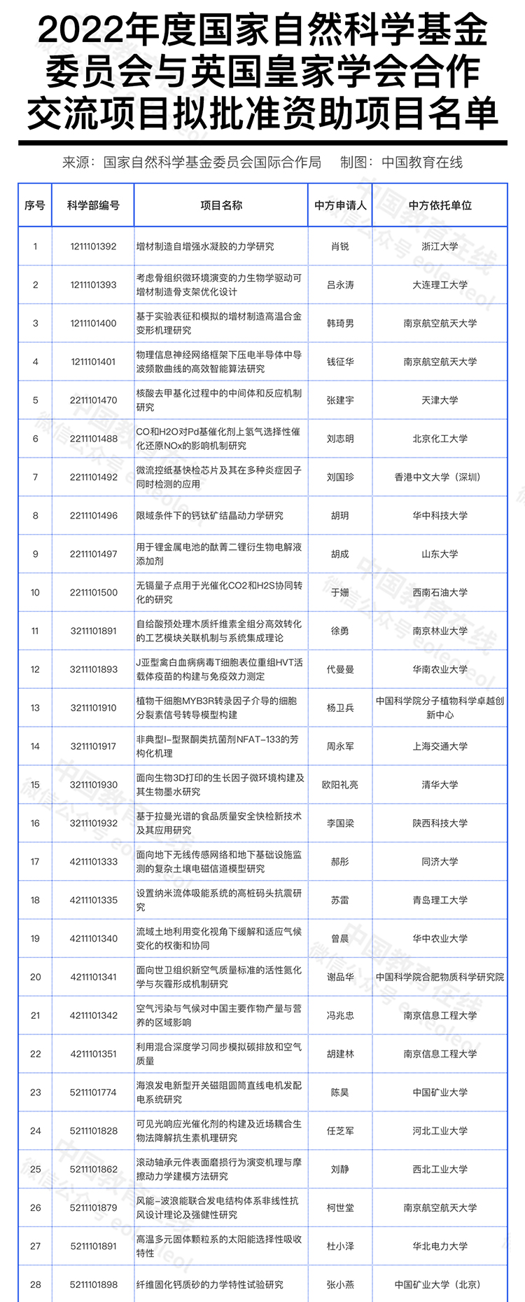 41所高校入選!2022年度NSFC與英國皇家學會合作交流項目擬批準資助公示