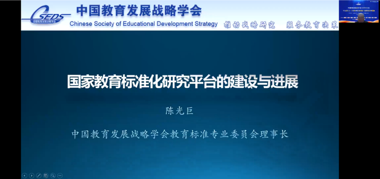 中國(guó)教育發(fā)展戰(zhàn)略學(xué)會(huì)教育標(biāo)準(zhǔn)專業(yè)委員會(huì)理事長(zhǎng)、北京師范大學(xué)原副校長(zhǎng)陳光巨教授發(fā)表了題為《國(guó)家教育標(biāo)準(zhǔn)化研究平臺(tái)的建設(shè)與展望》的報(bào)告。他指出:推進(jìn)教育治理體系和治理能力現(xiàn)代化是《中國(guó)教育現(xiàn)代化2035》的十大戰(zhàn)略任務(wù)之一,完善教育質(zhì)量標(biāo)準(zhǔn)體系,制定覆蓋全學(xué)段、體現(xiàn)世界先進(jìn)水平、符合不同層次類型教育特點(diǎn)的教育質(zhì)量標(biāo)準(zhǔn),提升政府綜合運(yùn)用法律、標(biāo)準(zhǔn)、信息服務(wù)等現(xiàn)代治理手段的能力和水平,建立健全社會(huì)參與學(xué)校管理和教育評(píng)價(jià)監(jiān)管機(jī)制,是中共中央、國(guó)務(wù)院提出的明確要求。教育標(biāo)準(zhǔn)專業(yè)委員會(huì)是中國(guó)教育發(fā)展戰(zhàn)略學(xué)會(huì)成立的標(biāo)準(zhǔn)化研究智庫(kù)。智庫(kù)成立后不久,就得到了教育部標(biāo)準(zhǔn)化管理部門(mén)的認(rèn)可,并下達(dá)了委托課題——“中國(guó)教育標(biāo)準(zhǔn)戰(zhàn)略研究”。在教育部和戰(zhàn)略學(xué)會(huì)的領(lǐng)導(dǎo)和支持下,教育標(biāo)準(zhǔn)專業(yè)委員會(huì)在教育標(biāo)準(zhǔn)化頂層設(shè)計(jì)、理論研究、實(shí)踐探索中的智庫(kù)功能將日益顯現(xiàn)。