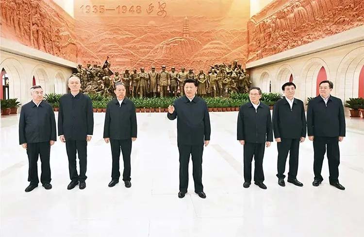 2022年10月27日,中共中央總書記、國(guó)家主席、中央軍委主席習(xí)近平帶領(lǐng)中共中央政治局常委李強(qiáng)、趙樂際、王滬寧、蔡奇、丁薛祥、李希,瞻仰延安革命紀(jì)念地。這是習(xí)近平在延安革命紀(jì)念館參觀《偉大歷程——中共中央在延安十三年歷史陳列》結(jié)束時(shí)發(fā)表重要講話。 新華社記者 燕雁/攝