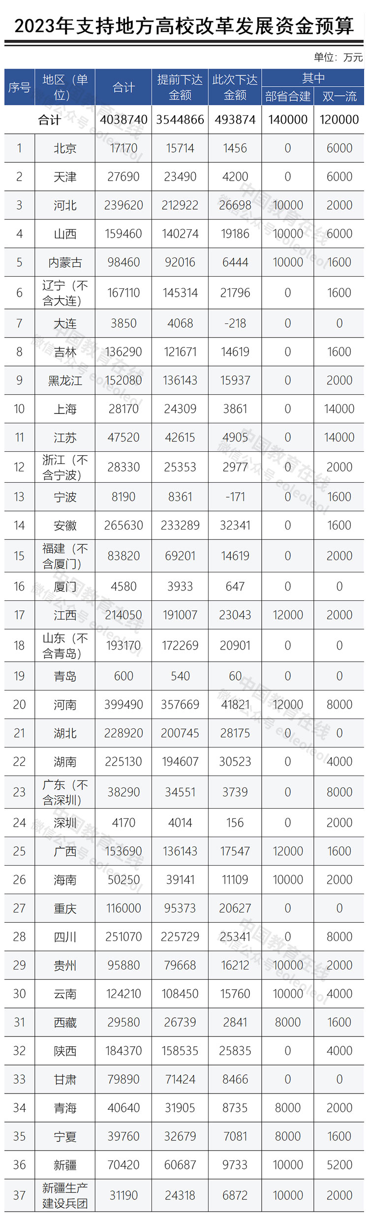 近日,財(cái)政部印發(fā)《關(guān)于下達(dá)2023年支持地方高校改革發(fā)展資金預(yù)算的通知》。為支持地方高校改革發(fā)展,本次向各省(自治區(qū)、直轄市、計(jì)劃單列市)下達(dá)資金預(yù)算合計(jì)49.4億元,加上此前已提前下達(dá)金額,目前已累計(jì)下達(dá)403.9億元。