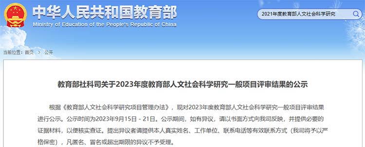 9月15日,教育部社科司公示了2023年度教育部人文社會(huì)科學(xué)研究一般項(xiàng)目評(píng)審結(jié)果。