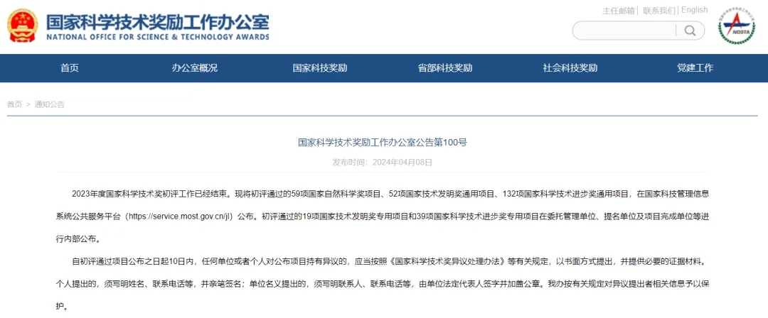 4月8日 ,國家科學(xué)技術(shù)獎勵工作辦公室公布2023年度國家科學(xué)技術(shù)獎初評結(jié)果。
