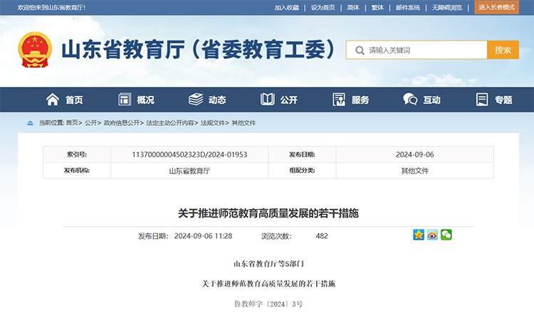 山東:支持具備條件的高校開(kāi)展本碩、本碩博師范生培養(yǎng)模式試點(diǎn)