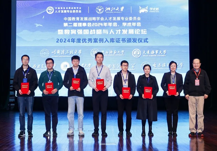 本次論壇還特別設(shè)置了2024年度優(yōu)秀案例入庫(kù)證書(shū)頒發(fā)儀式,石勇為高校代表頒發(fā)入庫(kù)證書(shū)。本次案例共征集16份,學(xué)術(shù)委員會(huì)從中優(yōu)選了7份案例入庫(kù),這也是繼2023年首批18份案例進(jìn)入中國(guó)教育發(fā)展戰(zhàn)略學(xué)會(huì)案例庫(kù)以來(lái)又一次重要評(píng)選。該舉動(dòng)鼓勵(lì)他們?cè)诖龠M(jìn)人才評(píng)價(jià)改革和高校建設(shè)等方面的研究和貢獻(xiàn),同時(shí)也激勵(lì)更多會(huì)員高校參與到新時(shí)代高校人才發(fā)展與評(píng)價(jià)的改革與創(chuàng)新中,為推動(dòng)人才發(fā)展貢獻(xiàn)力量。