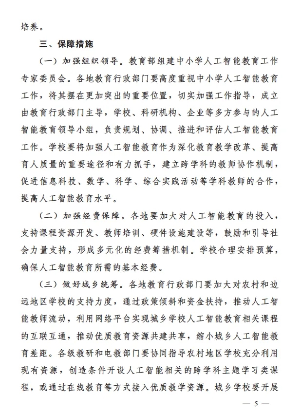 4. 統(tǒng)籌謀劃:加強頂層設計和部門協(xié)同,2030年前在中小學基本普及AI教育。