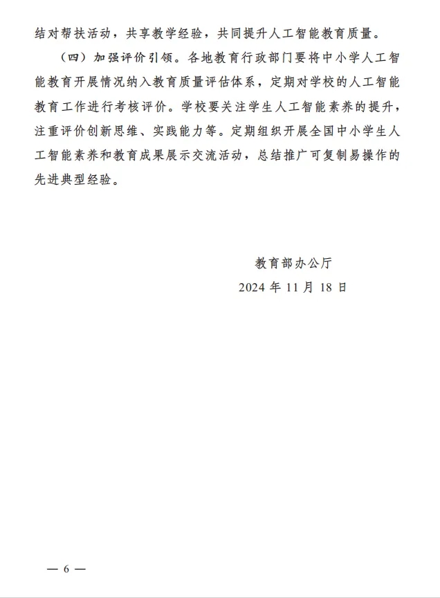 教育部組建AI教育工作專家委員會。各地教育行政部門成立AI教育領導小組,負責規(guī)劃、協(xié)調(diào)、推進和評估工作。